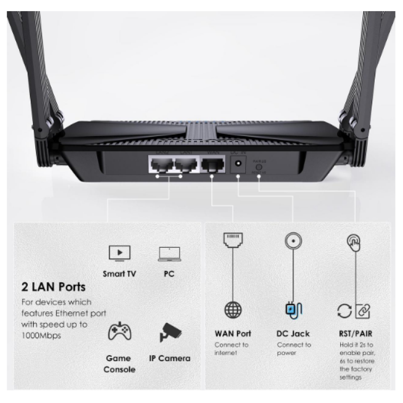 - Cutting-Edge Wi-Fi 6 Speeds: Wi-Fi 6(802.11ax) technology achieves faster speeds, greater capacity and reduced network congestion compared to the previous generation. This router upgrades to 3000Mbps high speed internet (574Mbps for 2.4GHz + 2402Mbps for 5GHz), reducing buffering and ideal for 4K streaming or gaming.